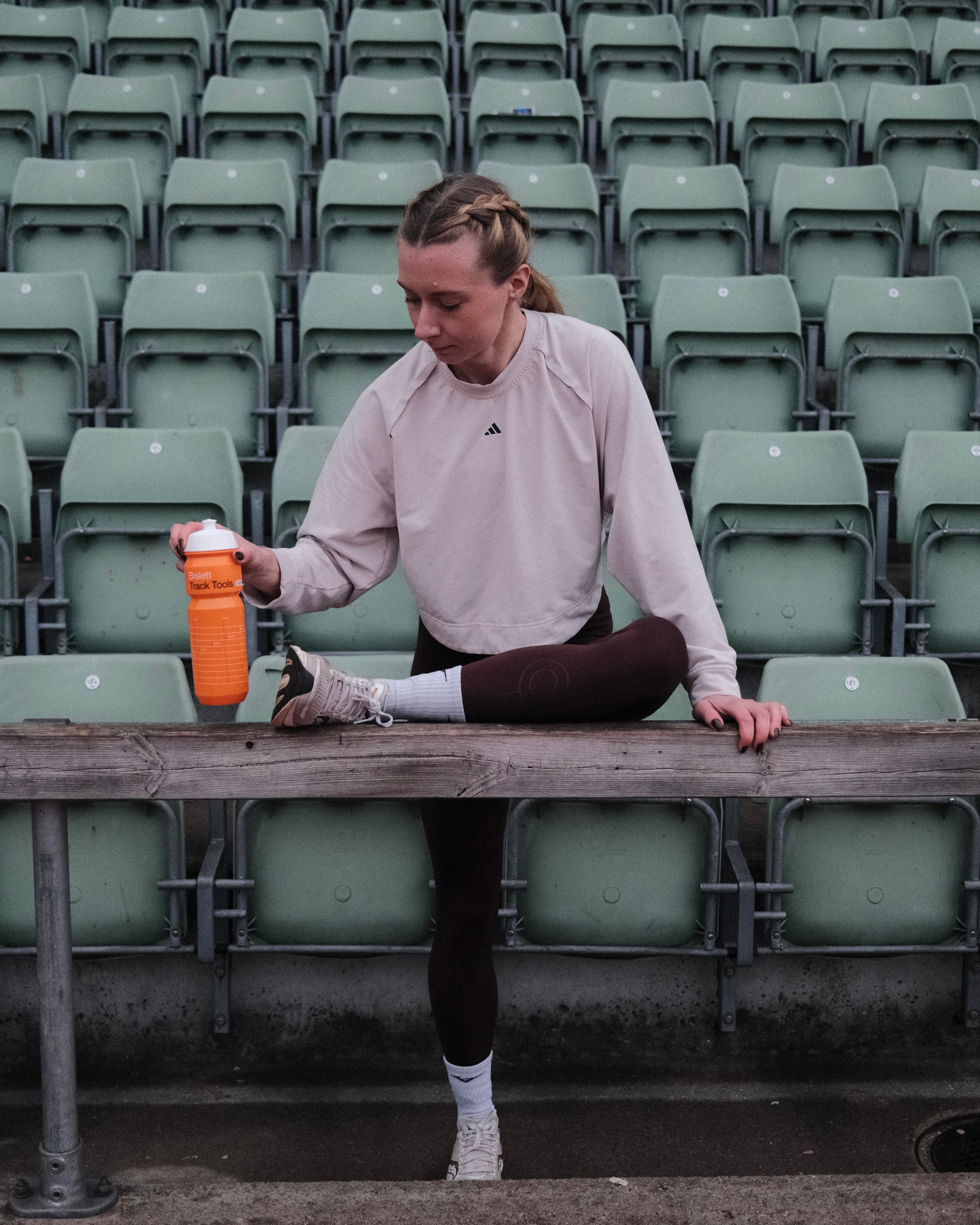 Med sine 546.5 meter på runden er ikke innendørsbanen på Bislett Stadion akkurat kjent for å være særlig enkel for den mentale matten når du løper lengre drag. Dette gjør BTT TrackMate til det perfekte treningsverktøyet for løpere som trener innendørs på Bislett Stadion. Med rundediagram printet direkte på flasken, kan du enkelt se hvor du skal stoppe når du løper ulike distanser som f.eks. 1000m, 1200m eller 3000m. Og trenger du mer komplekse utregninger er det bare å ta turen over til Bislett.run.